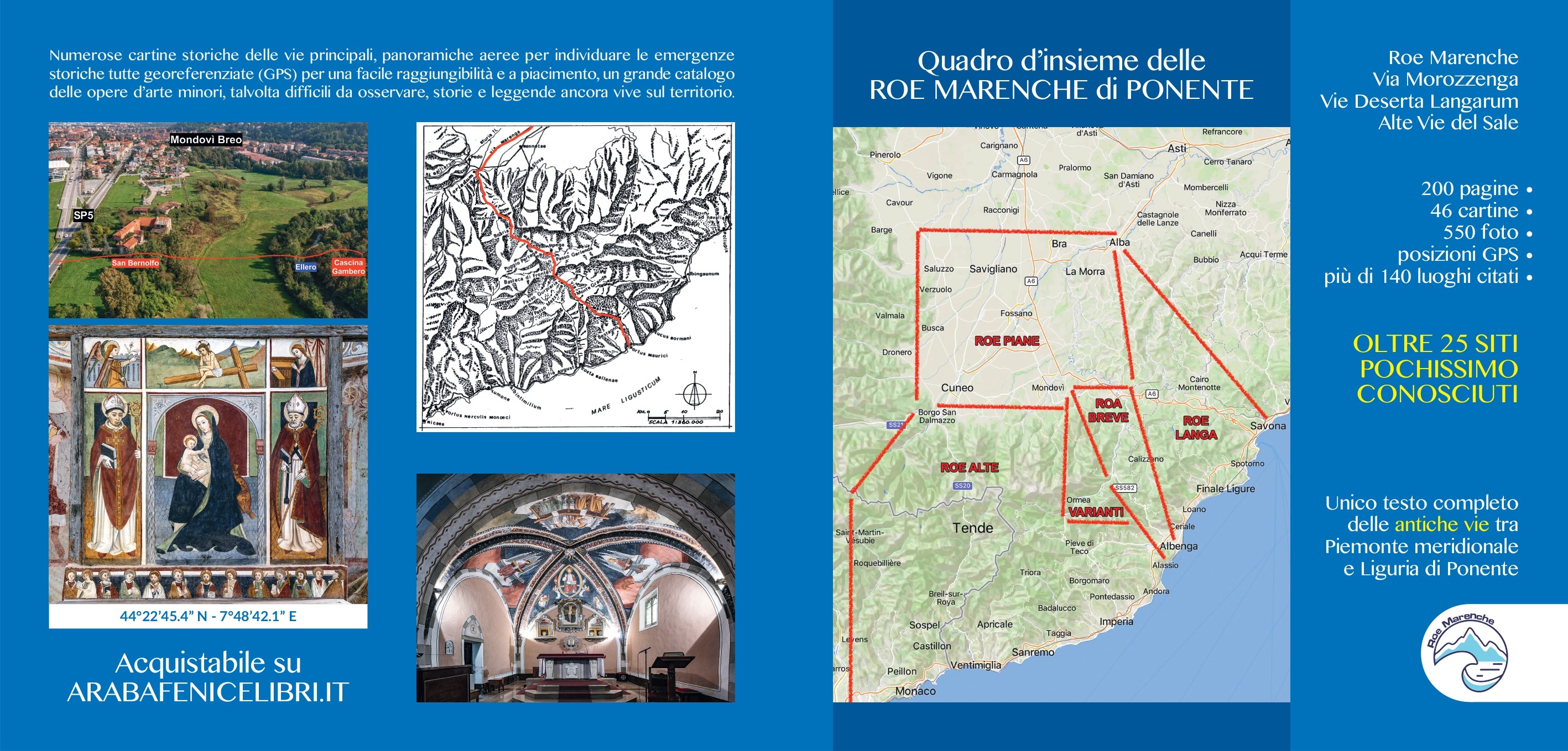 Per la prima volta si narra un territorio senza confini, come lo fu nella preistoria dell’uomo. I nomi moderni sono Cuneo, Imperia, Savona, Alta Provenza, ma da sempre erano le terre delle Roe Marenche, le antiche vie che attraversavano le Alpi Marittime e Liguri verso il mare. Si trasportava di tutto e non solo sale. Anche cultura, guerre e sapori. Oggi continuano ad esistere, in forma moderna, come strade statali e persino autostrade, ma anche